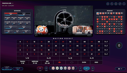 Permainan ini tersedia total 12 bola angka + 1 bola angka 0 yang disusun sesuai dengan yang terlihat pada panel betting, yakni dengan susunan warna Hitam / Merah. Taruhan yang bisa kalian pasang yaitu Small / Big Bet, Even / Odd Bet, Red / Black Bet, dan pilihan angka berapa yang akan keluar. Setiap putaran permainan PingPong 12D mengeluarkan 1 bola (angka) saja.
